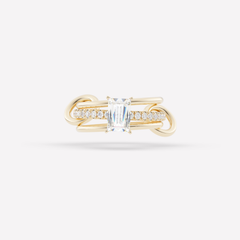The Nayeli YG Emerald Cut features a central 18k yellow gold band of pavé-set white diamonds, framed by two solid bands and matching 18k yellow gold connectors. With a center stone of your choice and beautifully balanced design, the Nayeli YG Emerald Cut is a perfect canvas for customization to fit your kind of love. Each Nayeli YG Emerald Cut is individually handmade in Los Angeles.