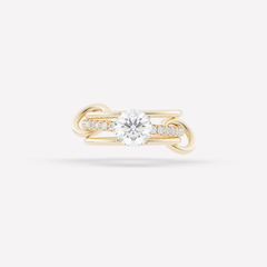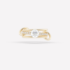 The Nayeli YG features a central 18k yellow gold band of pavé-set white diamonds, framed by two solid bands and matching 18k yellow gold connectors. With a center stone of your choice and beautifully balanced design, the Nayeli YG is a perfect canvas for customization to fit your kind of love. Each Nayeli YG is individually handmade in Los Angeles.