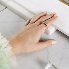 Our rings can be worn across several fingers, or stacked all on one. To wear stacked on one finger, order the true size of the finger you'd like to fit. To wear across several fingers, order the size of the largest finger. If you're unsure of your size, we are happy to send you a ring sizer. Email us your name and address to dear@spinellikilcollin.com. For more information on our sizing, click here