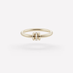 The Silas YG Pavé linked ring is an iconic piece, with a minimalist, unisex design that puts material first. Featuring a band of 18k yellow gold adorned with three unfixed annulets, one of which is pavé-set with white diamonds, the Silas YG Pavé linked ring is stunning worn alone or as an orbiting addition to other Spinelli Kilcollin rings. Each Silas YG Pavé ring is handmade in Los Angeles.