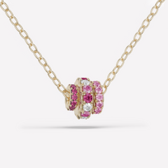 The Vesta Necklace features a trio of full-round annulets crafted from 18k yellow gold with pavé-set white diamonds or precious gemstones. The Vesta Chain measures 18 inches in length, with an included link that allows for 16 inch length adjustment. Each Vesta Necklace is handcrafted in Los Angeles.