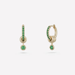 The Zahra Pavé Hoop Earrings display a familiar, streamlined silhouette and comfort closure in 18k gold or .925 sterling silver with pavé-set stones. Three annulets adorn each hoop, the center of which bears a drop charm for added contrast and movement. Each Zahra Pavé Hoop Earring is individually handmade in Los Angeles.